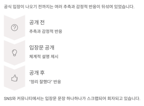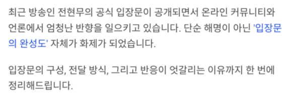 오히려 입장문 자체가 새로운 콘텐츠가 되는 분위기입니다.