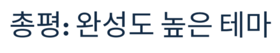 총평 : 몰입감과 감성 둘 다 잡은 완성도 높은 테마