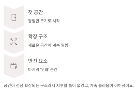 진행하면서 새로운 공간이 계속 열리면서 ‘우와’ 소리가 절로 나왔어요.