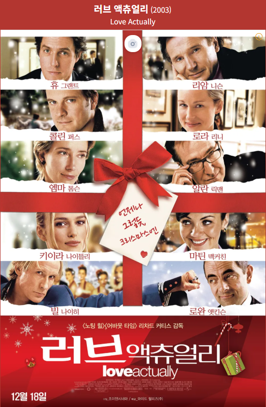 | 러브 액츄얼리 | 로맨스/드라마 | 감성 충만 연말 대표작 |