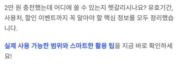 특히 2만 원 단위로 충전한 분들은 유효기간, 사용처, 할인 이벤트 등