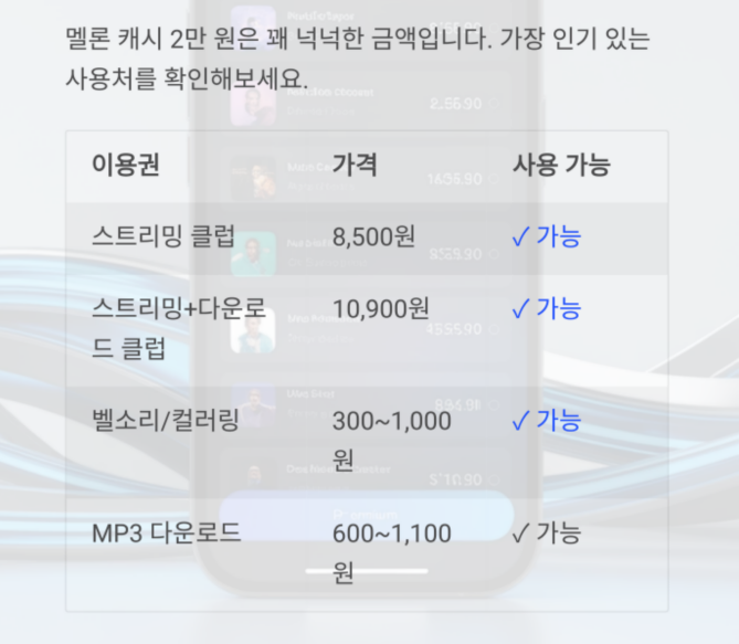 20000 멜론 캐시, 어디에 어떻게 쓸 수 있나?