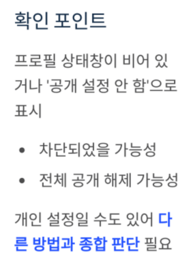 상대방의 프로필 상태창이 아예 비어 있거나 ‘공개 설정 안 함’으로 뜬다면,