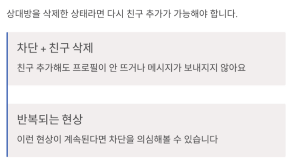 내가 상대방을 친구 추가해도 프로필이 안 뜨거나 메시지가 보내지지 않아요.