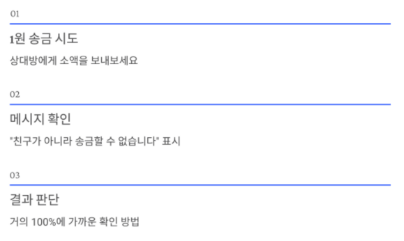 상대방에게 1원을 송금 시도해 보세요.
