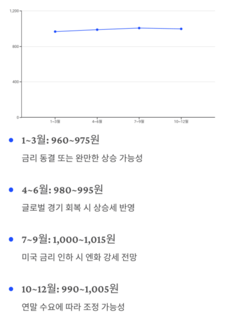 | 2026년 1~3월 | 960~975 | 금리 동결 or 완만한 상승 가능성 |
