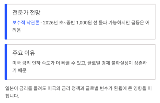 | 2026년 7~9월 | 1000~1015 | 미국 금리 인하 시 엔화 강세 전망 |