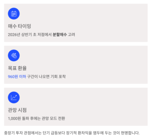 특히 환율이 960원 이하로 떨어지는 구간이 있다면 기회를 잡는 것이 유리하며,