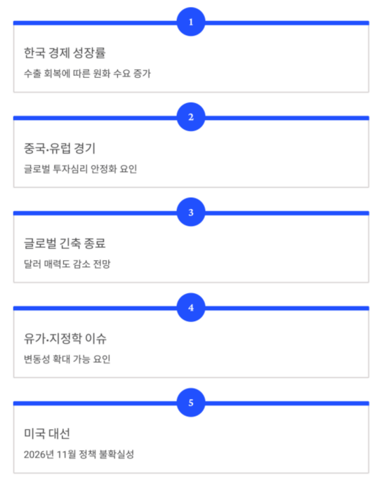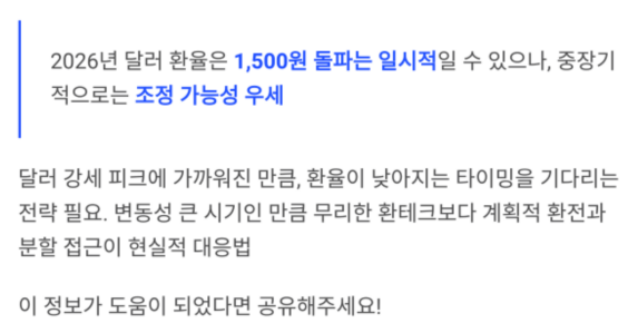 | 2026년 1분기 | 1,460~1,500원 | 미국 금리 동결, 연준 발언 주목 |
