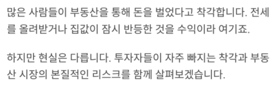많은 사람들이 부동산을 통해 돈을 벌었다고 착각합니다.