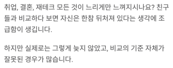 친구들과 비교하다 보면 어느새 자신은 한참 뒤처져 있다는