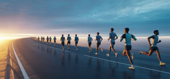 우리는 마라톤을 뛰고 있습니다.