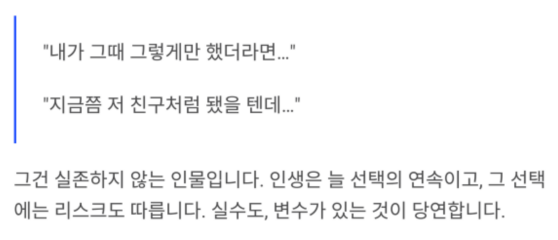 하지만 그건 실존하지 않는 인물입니다. 인생은 늘 선택의 연속이고,