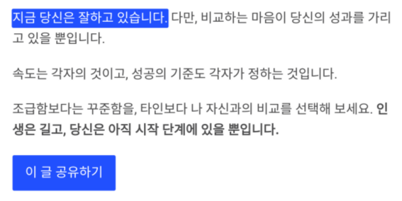 다만, 비교하는 마음이 당신의 성과를 가리고 있을 뿐입니다.