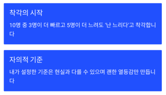 5명은 더 느리다면 나는 중상위권인데도 ‘난 느리다’고 착각하는 것이죠.