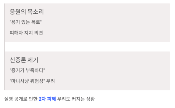 “용기 있는 폭로”라는 응원도 있는 반면, “증거가 부족하다”,