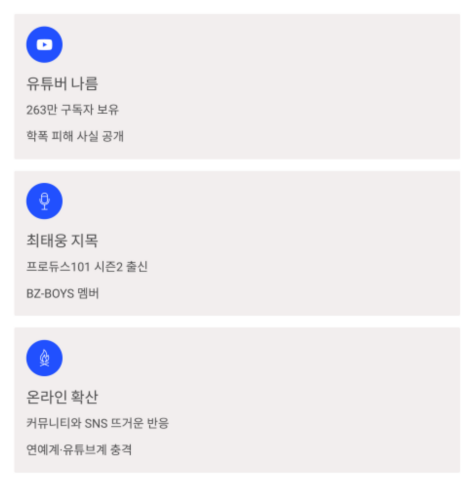 유튜버 나름은 개인 인스타그램을 통해 학폭 피해 사실을 언급하며,