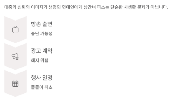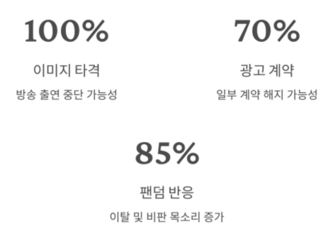 | 이미지 타격 | 방송 출연 중단 가능성 |