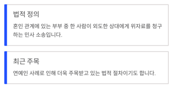 외도한 상대에게 법적으로 위자료를 청구하는 민사 소송입니다.