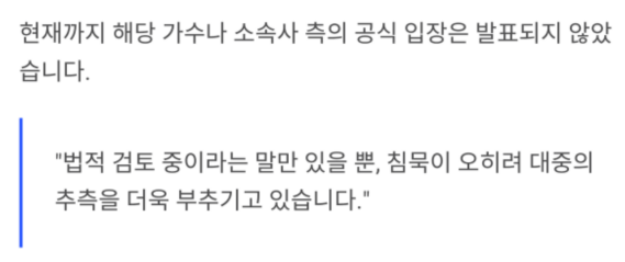 현재까지 해당 가수나 소속사 측의