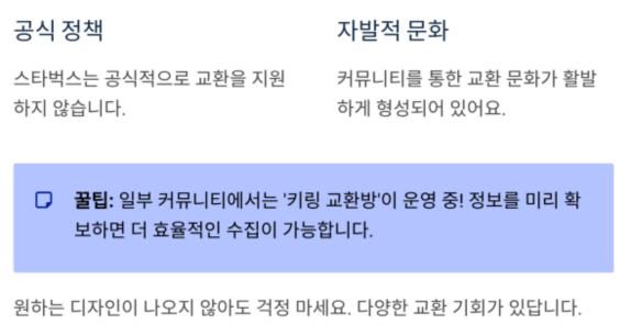 다만 스타벅스 측은 공식적으로 교환을 지원하지 않기 때문에,