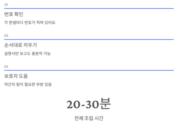 각 패널마다 번호가 적혀 있어서 순서대로 맞춰 끼우면 되는데요,