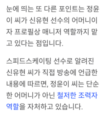 눈에 띄는 또 다른 포인트는 정윤이 씨가 신유현 선수의 어머니이자