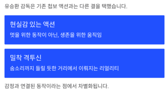 특히 박정민과 조인성의 밀착 격투신은 숨소리까지 들릴 듯한 거리에서 이뤄지며,