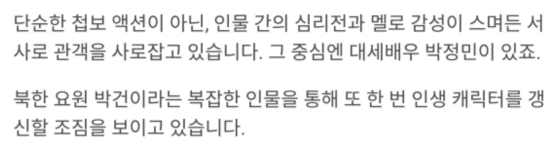 '북한 요원 박건'이라는 복잡한 인물을 통해
