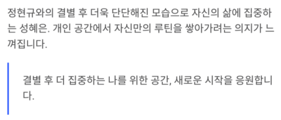 한때 정현규와의 결별설로 주목받았던 성혜은.