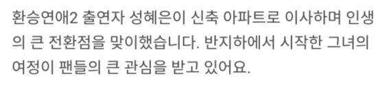 최근 화제를 모으고 있는 ‘환승연애 2’의 출연자 성혜은이