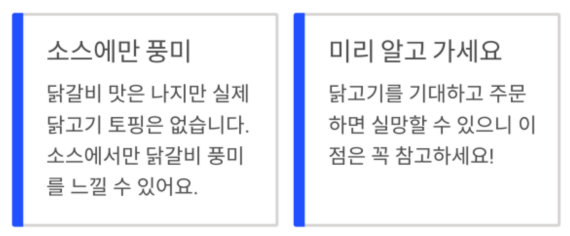 | 주먹밥 | 기본 맵닭 | 식사 대용 가능 |