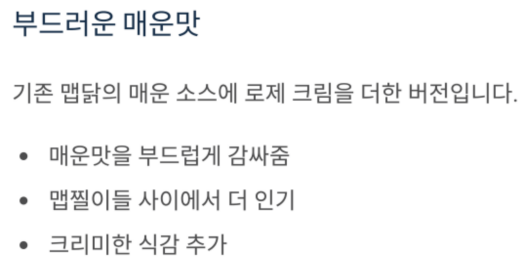 | 맵닭 로제 버전 | 11,500원~ | 부드러운 맛 선호 시 |