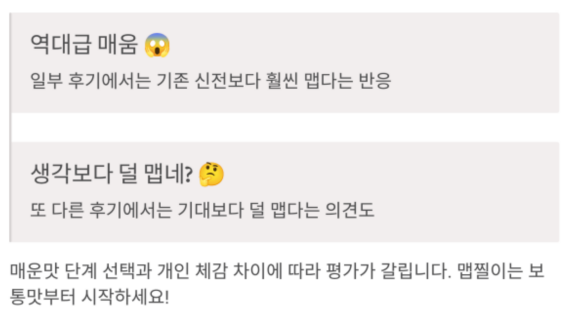 어떤 후기는 "역대급 매움"이라는 반응도 있지만,