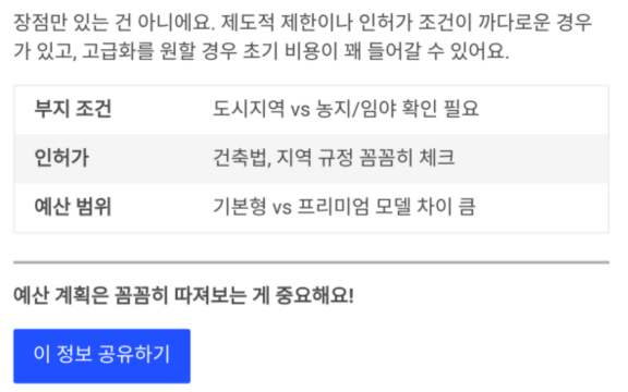 | 인허가 | 건축법, 지역 규정 확인 필요 |
