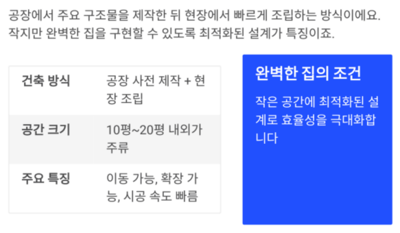 현장에서 빠르게 조립하는 방식의 주택이에요.