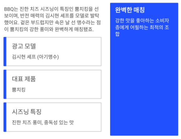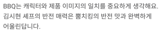 BBQ는 광고에 있어서 캐릭터와 제품 이미지의 일치를 중요하게 생각하는데요,