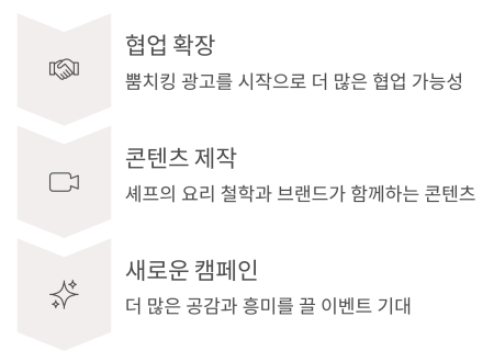 특히 셰프의 요리 철학과 브랜드가 함께하는 콘텐츠가 만들어진다면 더 많은 공감과 흥미를 끌 수 있겠죠.