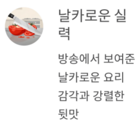 감춰진 날카로운 요리 실력처럼,