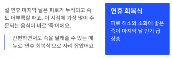 | 죽·도시락 | 연휴 후반 인기 메뉴 |