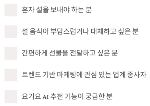 설음식도 점점 ‘나를 위한 소비’로 바뀌는 흐름이에요.