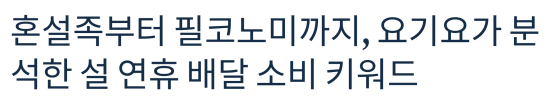 혼설족부터 필코노미까지, 요기요가 분석한 설 연휴 배달 소비 키워드