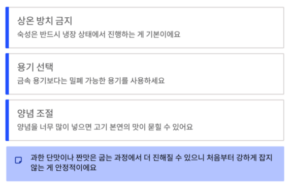 짠맛이 강하면 고기 맛이 가려지거든요.