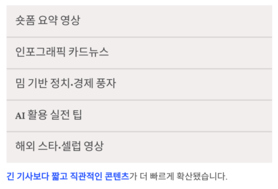 즉, 긴 기사보다 짧고 직관적인 콘텐츠가 더 빠르게 확산됐습니다.