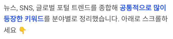 뉴스, SNS, 글로벌 포털 트렌드를 종합해 보면 공통적으로 많이 등장한 키워드가 분명히 보입니다.
