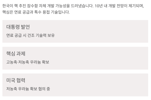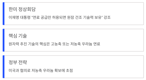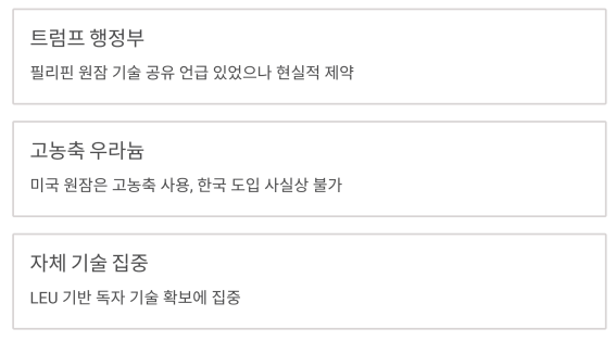 따라서 한국은 LEU 기반 자체 기술 확보에 더욱 집중할 수밖에 없는 구조입니다.