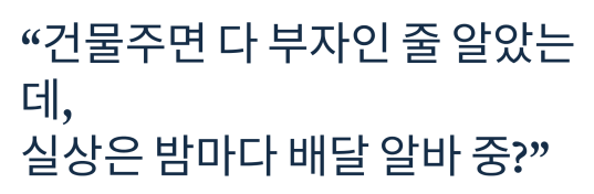 "건물주면 다 부자인 줄 알았는데, 실상은 밤마다 배달 알바 중?"