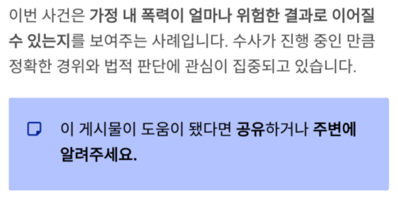 가정 내 폭력이 얼마나 위험한 결과로 이어질 수 있는지를 보여주는 사례입니다.