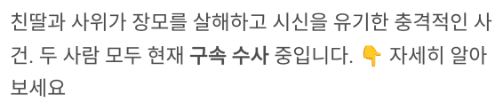- 이후 시신을 여행용 캐리어에 담아 하천에 유기