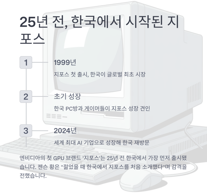 엔비디아의 첫 GPU 브랜드 '지포스'는 25년 전 한국에서 가장 먼저 출시됐습니다.